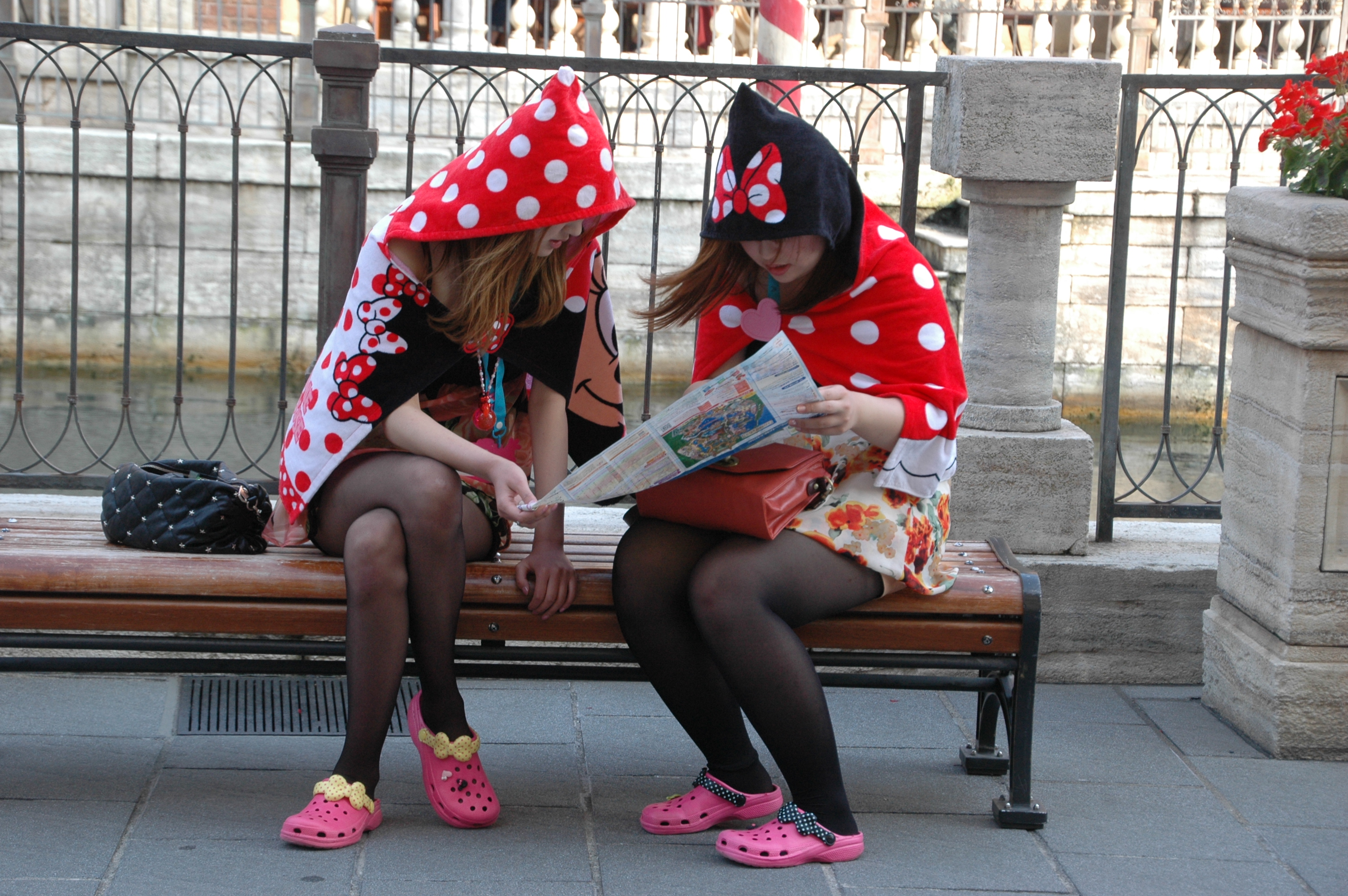 Hooded Disney towels are a fashion accessory too, worn as shawls and worn with pride.