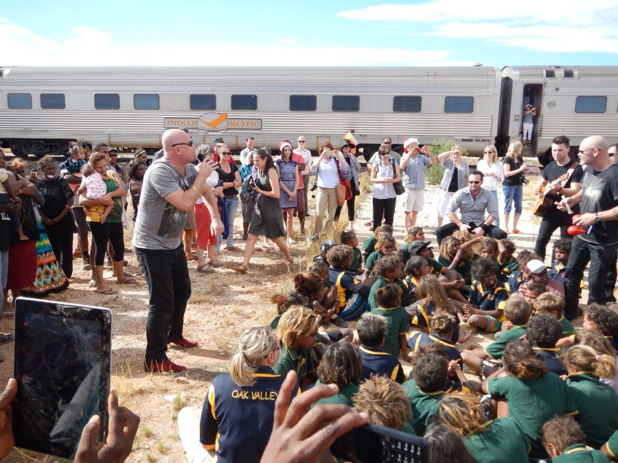 Chocolate Starfish perform for children from Yalata and Oak Hill. Image Briar Jensen